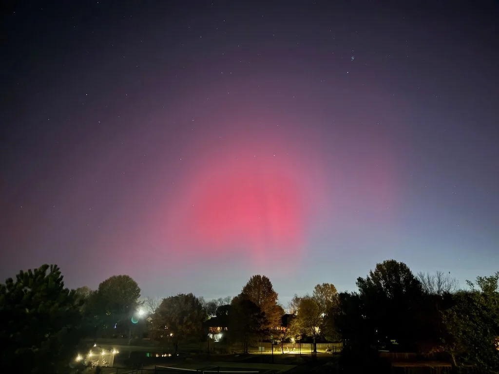 The aurora was visible from the Springfield MO area this past Tuesday! My husband said that he couldn’t see it when he walked outside at our house in Nixa – but his phone certainly did! The picture was taken at 8:20 PM.