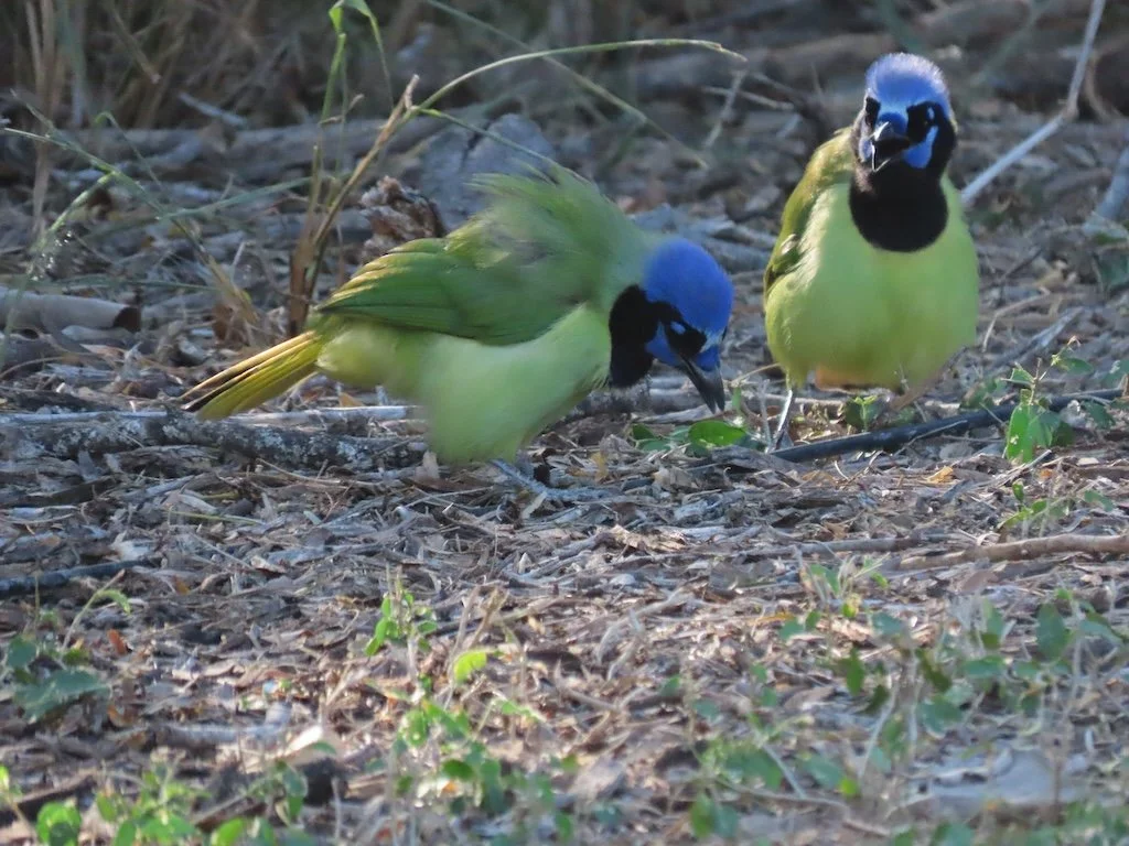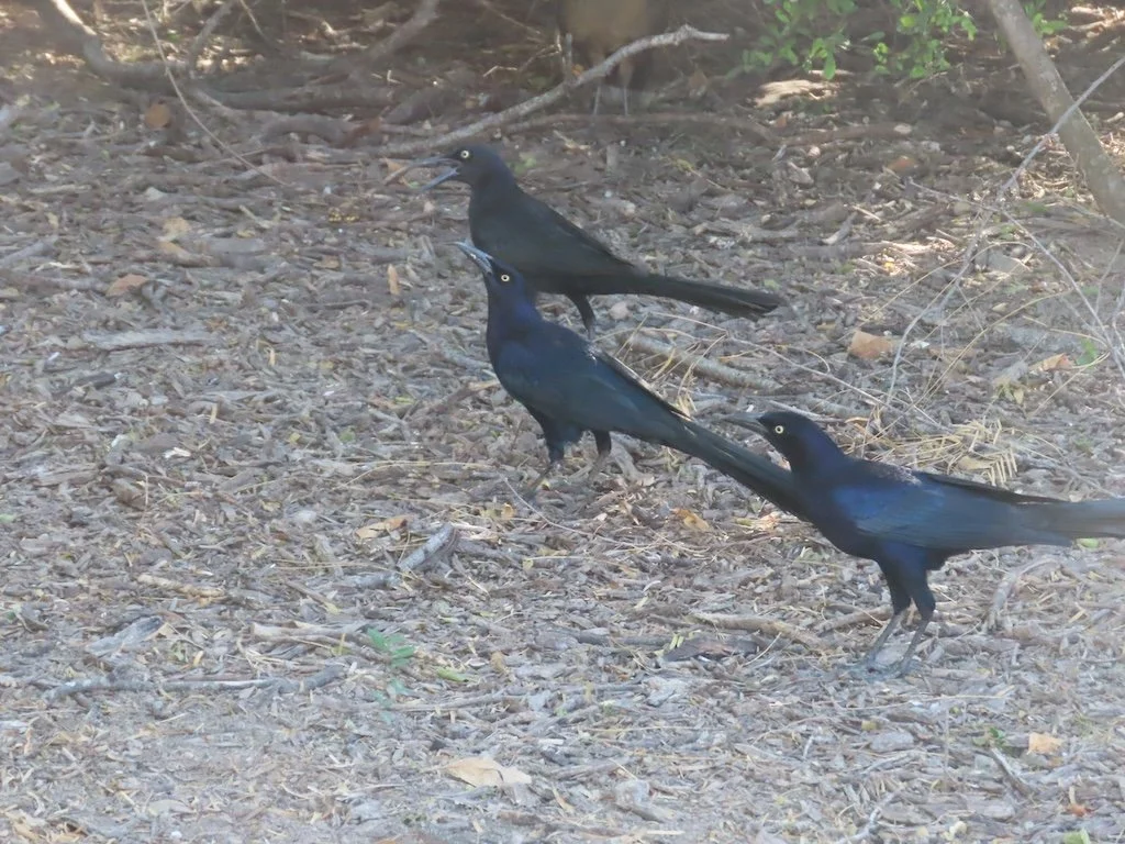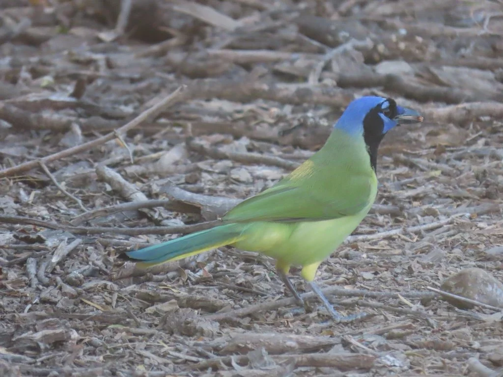 When we got off the tram, the green jays and great-tailed grackles were at the feeder.