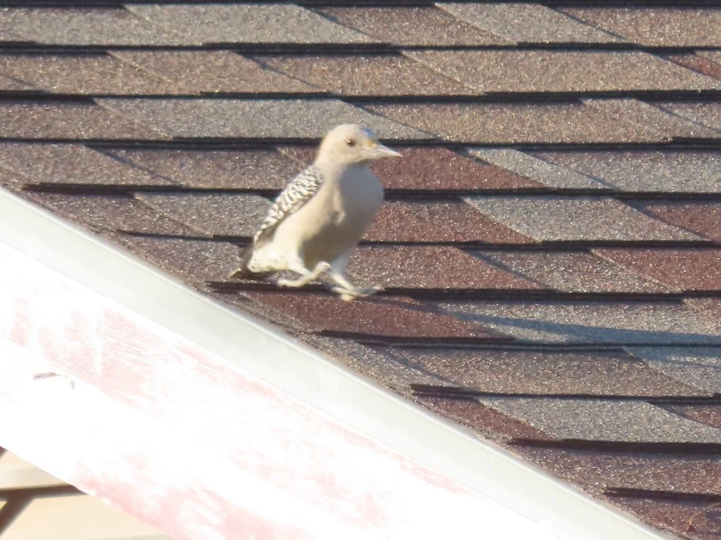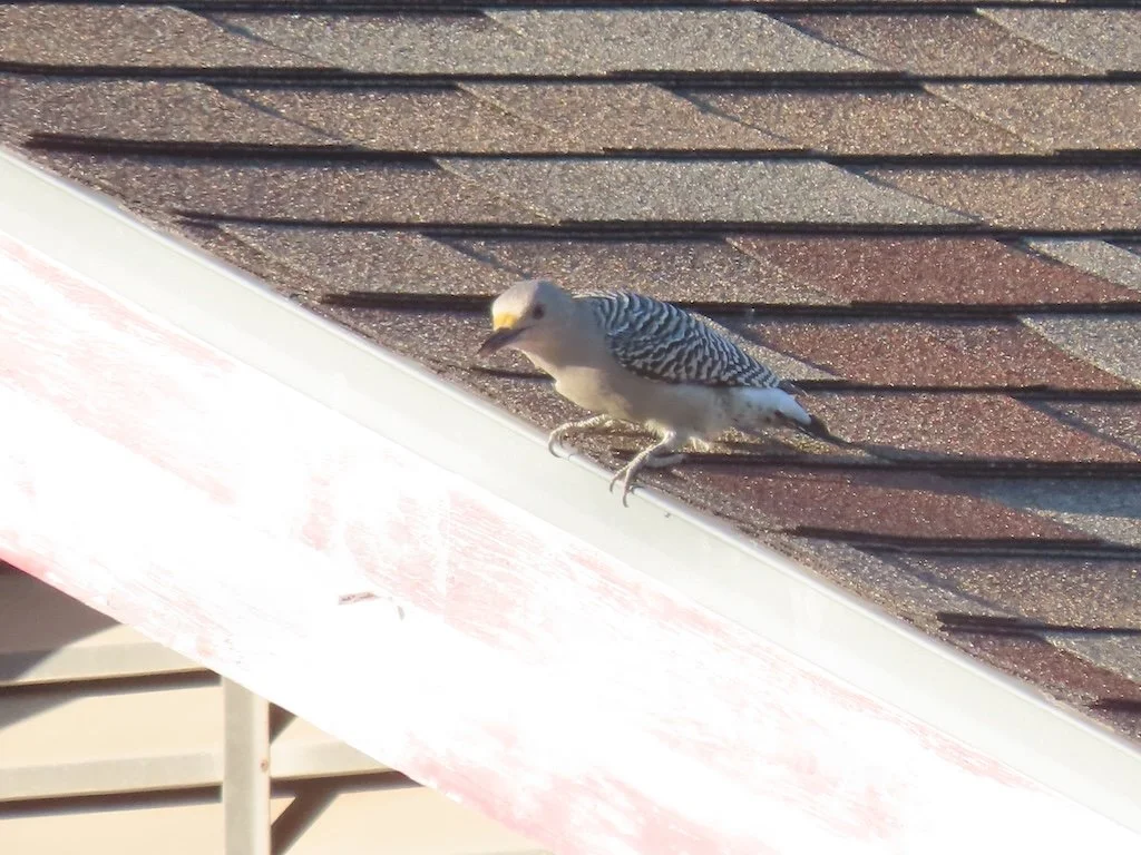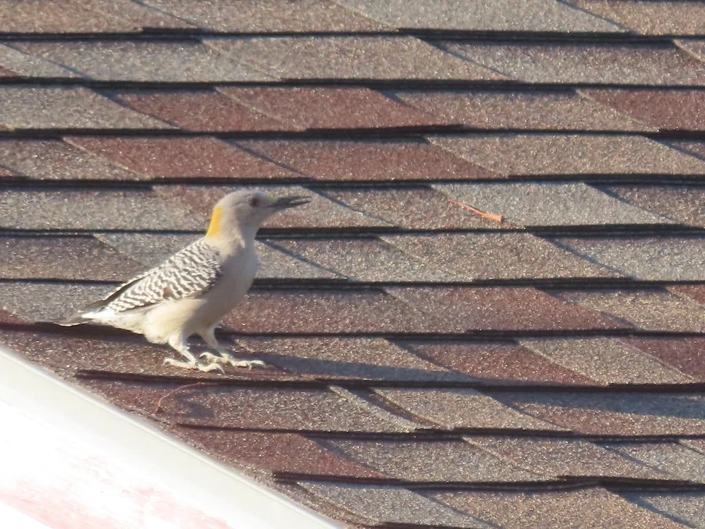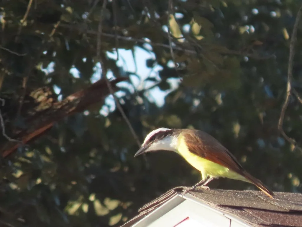 A great kiskadee was on the same roof striking a vulture-like pose.