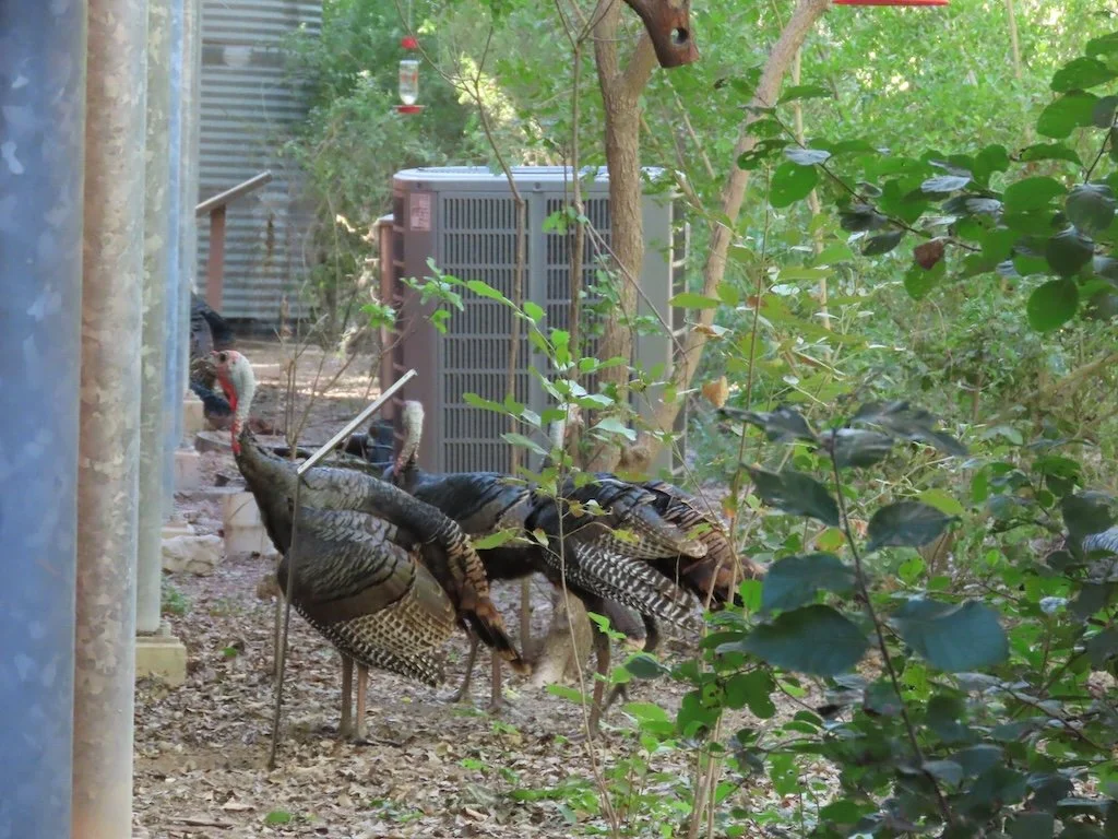 /It was a very hot afternoon (after our visit to Santa Ana) when we arrived at Bentsen- Rio Grande Valley State Park – about 90 degrees. On the plus side – we saw turkeys before we got to the visitor center!