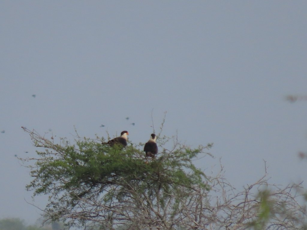 A pair of Crested Caracaras were in a treetop – turning their backs to us!