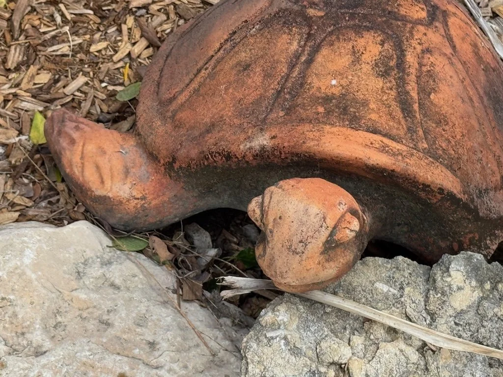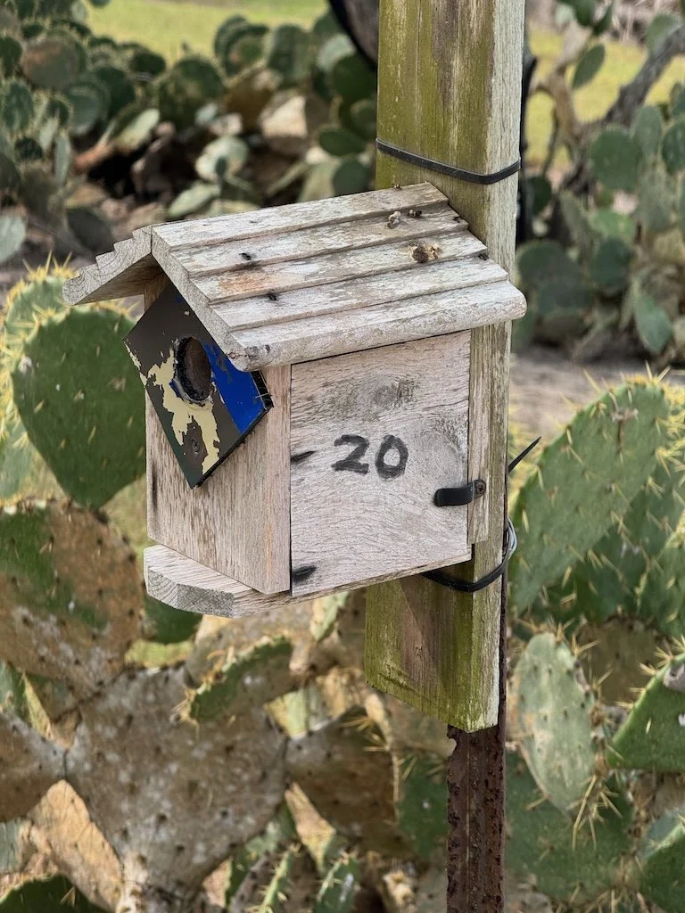 Around the house are bird houses and feeders…pots and sculptures…structures covering ant hills to protect the horned toads feeding on the ants!