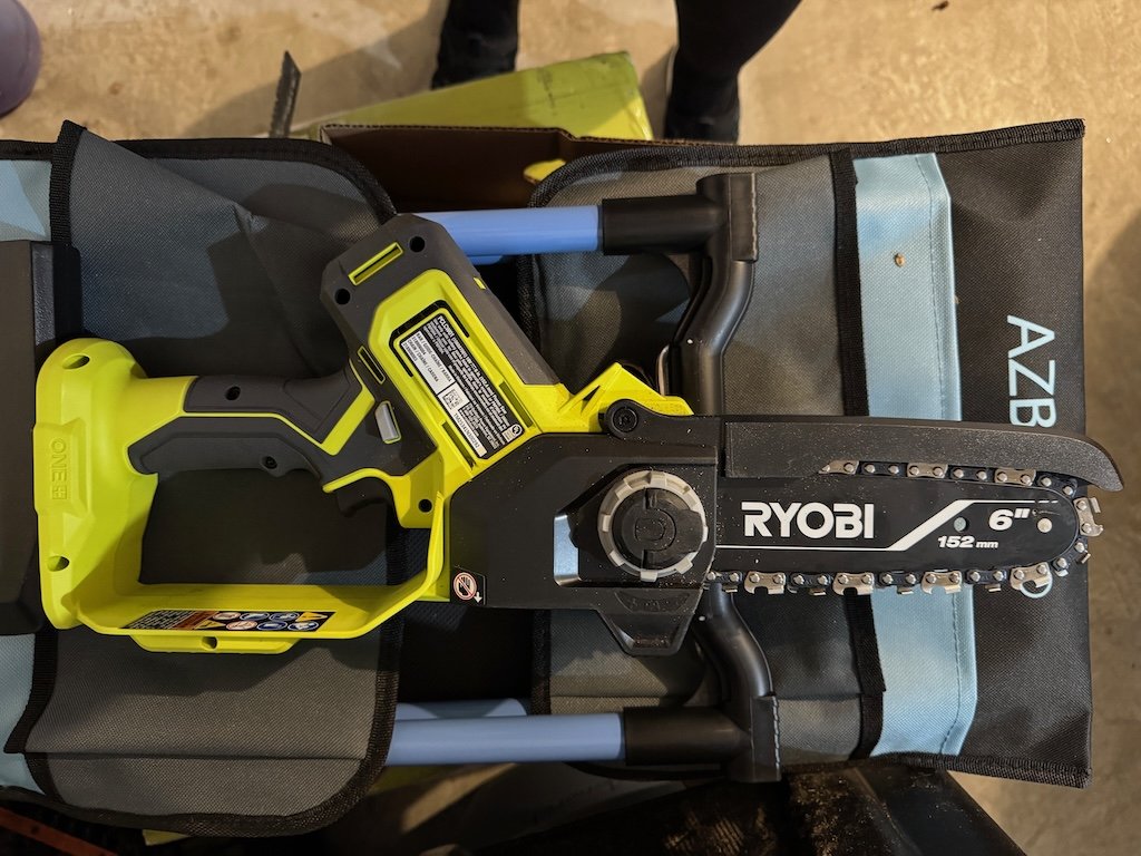 Pruning chainsaw. I celebrated a new tool – realize I should have bought one sooner.