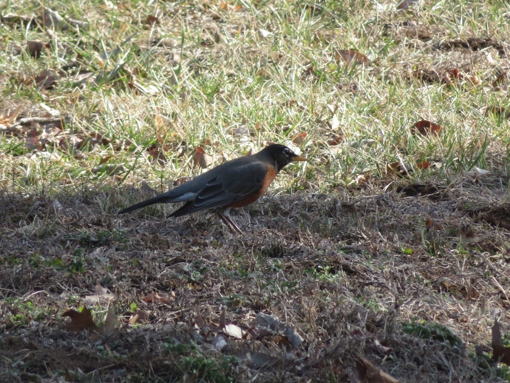 /It was a sunny day in the mid-60s in our neighborhood. As I started my walk around our storm water ponds, I saw two robins – the first ones I’ve seen since last fall!