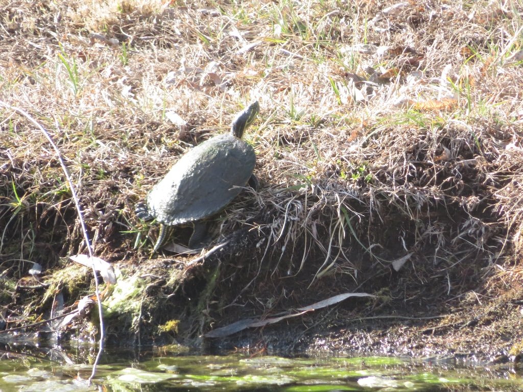 There were turtles on the bank and in the water at the place I seem them most frequently.