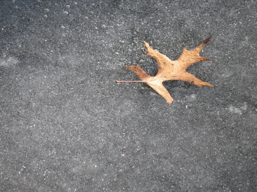 There was ice on the second (smaller) pond. There were leaves stuck in the ice. One area has a circular center and then branches off that center. The ice would likely be gone by the end of the day.