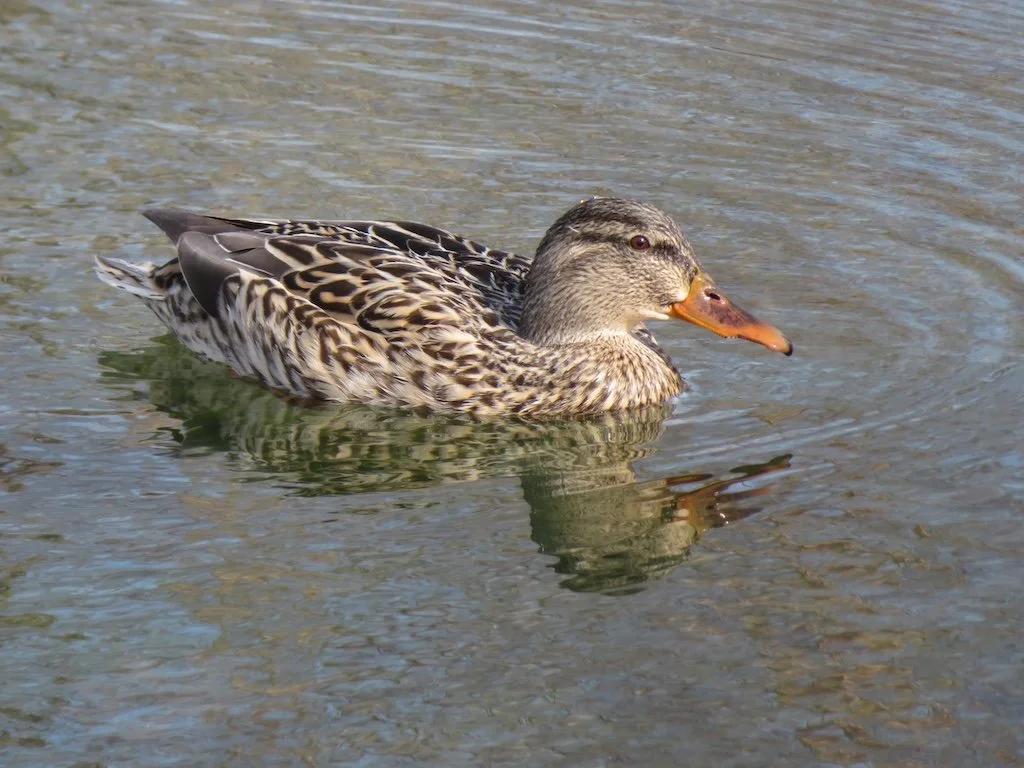 A male and female mallard swam out into the pond. The female was eating and posed for a better picture that the male. I wondered if they were the same pair that has been at our pond for the last couple of years…hatching ducklings…and then losing them to the turtles.