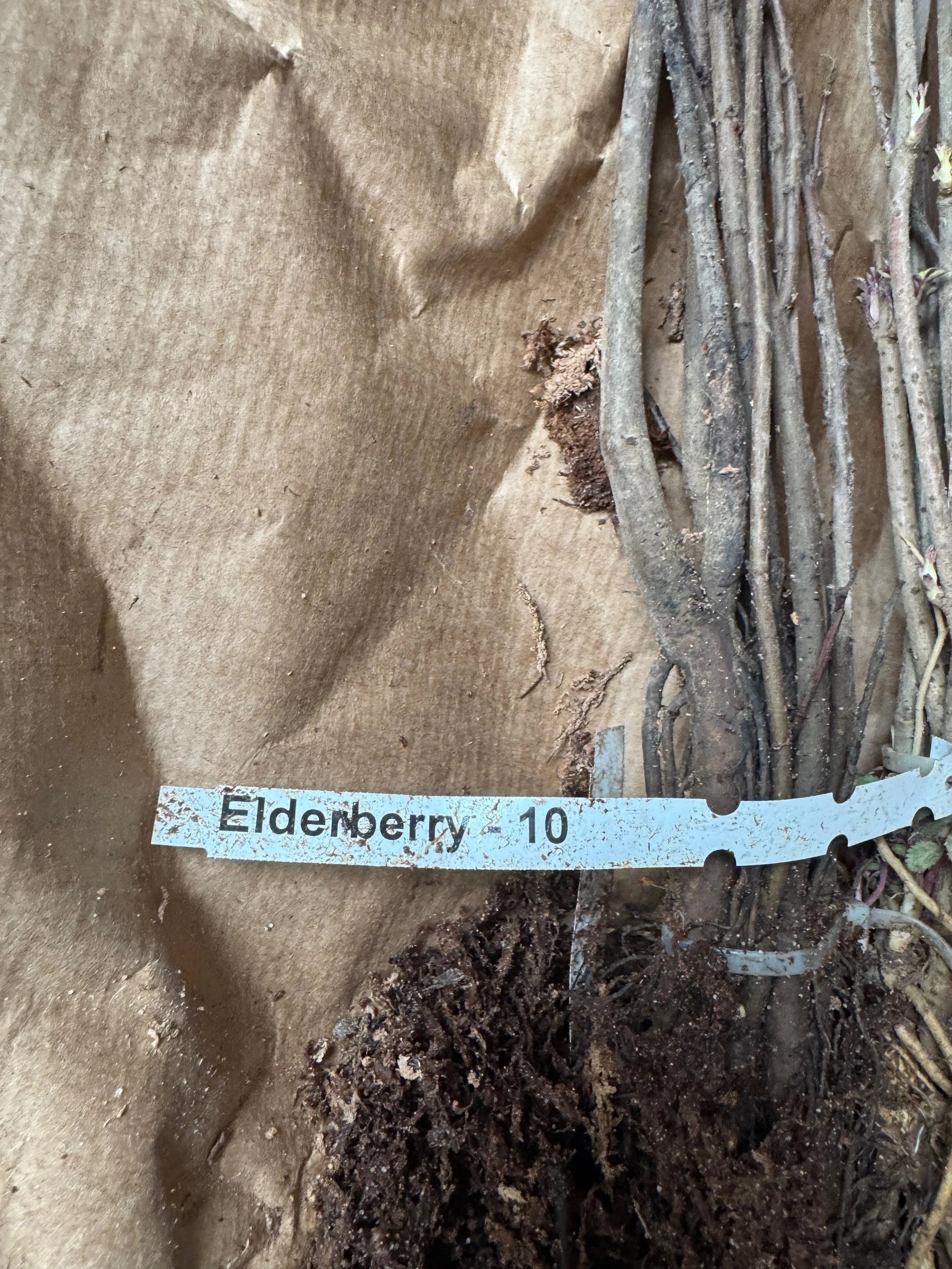 /I ordered Pawpaw (Asimina triloba) and Elderberry Elderberry (Sambucus canadensis) seedlings from Missouri’s George O. White State Forest Nursery (a service provided by the Missouri Department of Conservation)….and they came last week! There were 10 seedlings for each species – the plan was for me to plant half of them in my yard and my daughter getting the rest for hers.
