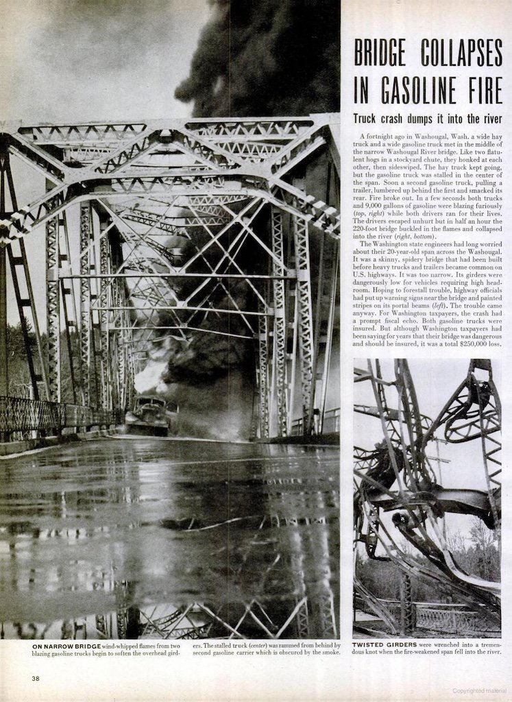 Life Magazine 1947-02-24, Bridge in Washington collapses in gasoline fire