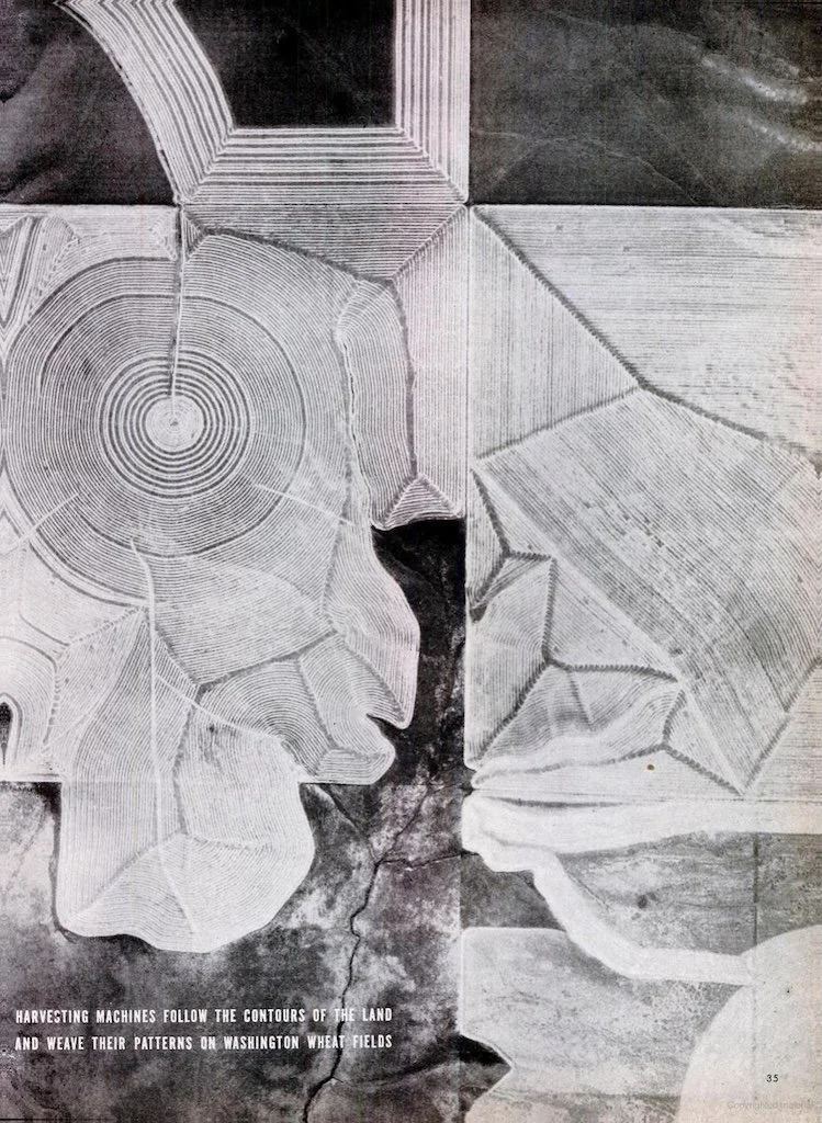 Life Magazine 1947-08-18, Harvesting machine patterns in Washington wheat fields