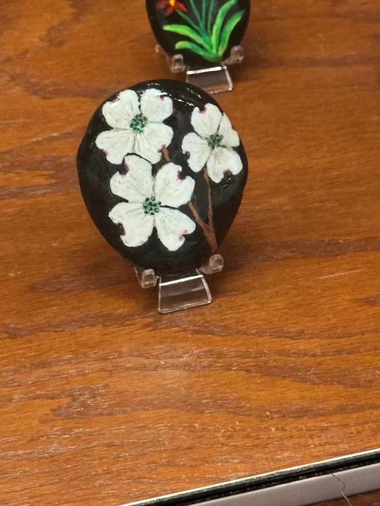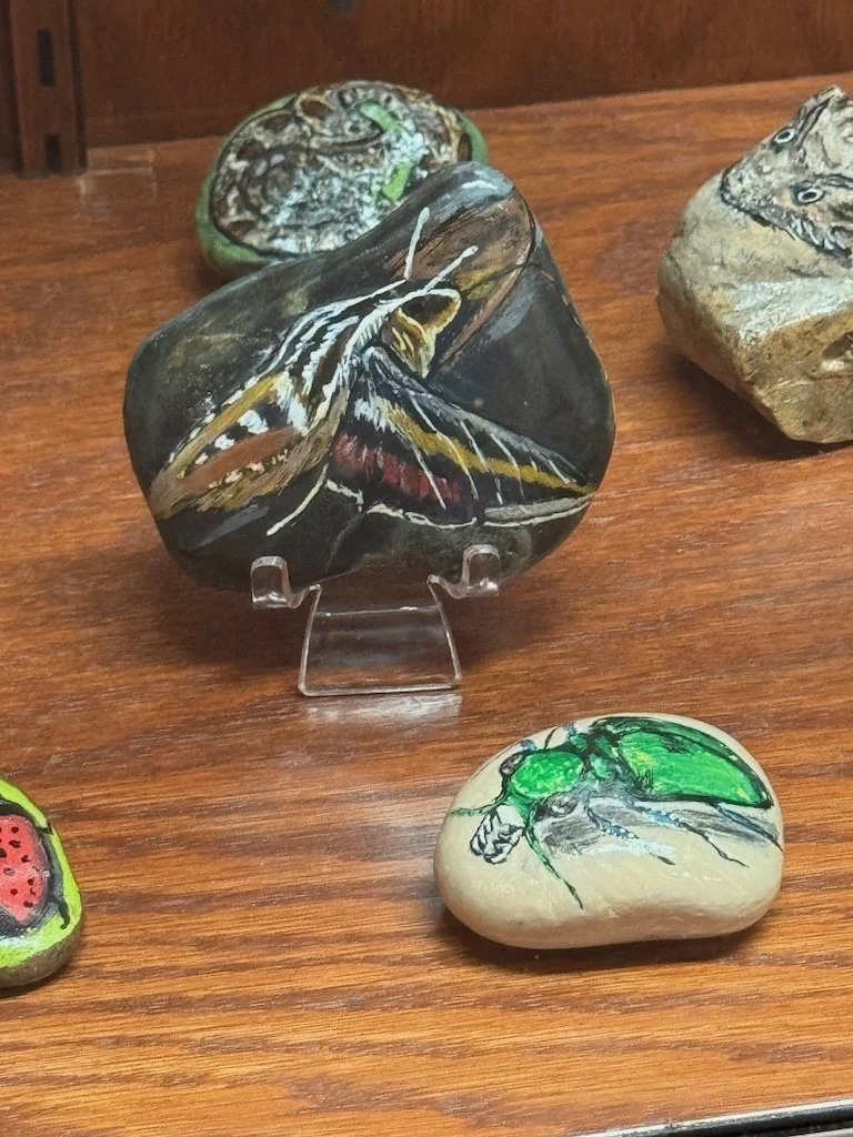Inside the building there was a display of painted rocks that I enjoyed.