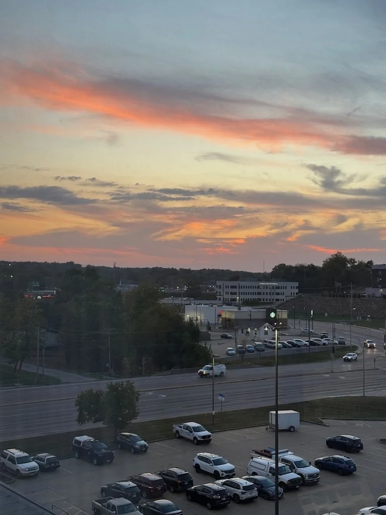 The sunset from the hotel window was a good view for the end of the day.