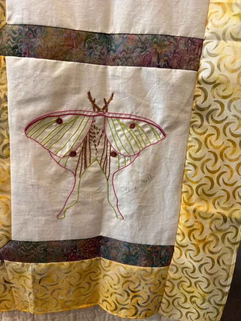 Several quilts were hanging and one featured butterflies and moths. I chose the depiction of the Luna Moth to include in this post.