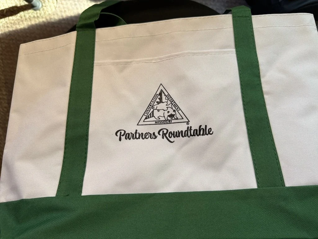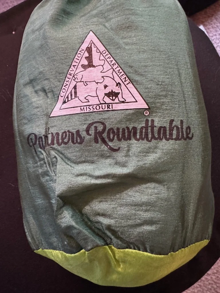 There was the usual bling – a canvas tote (I might leave this one in my car to use when I don’t have my regular grocery bags with me), a 2026 MDC calendar (beautiful Missouri pictures…we’ll hang it on the side of our refrigerator in January), and a lanyard. I picked up a small flashlight from one of the tables and won a hammock when I asked a question in the closing session!