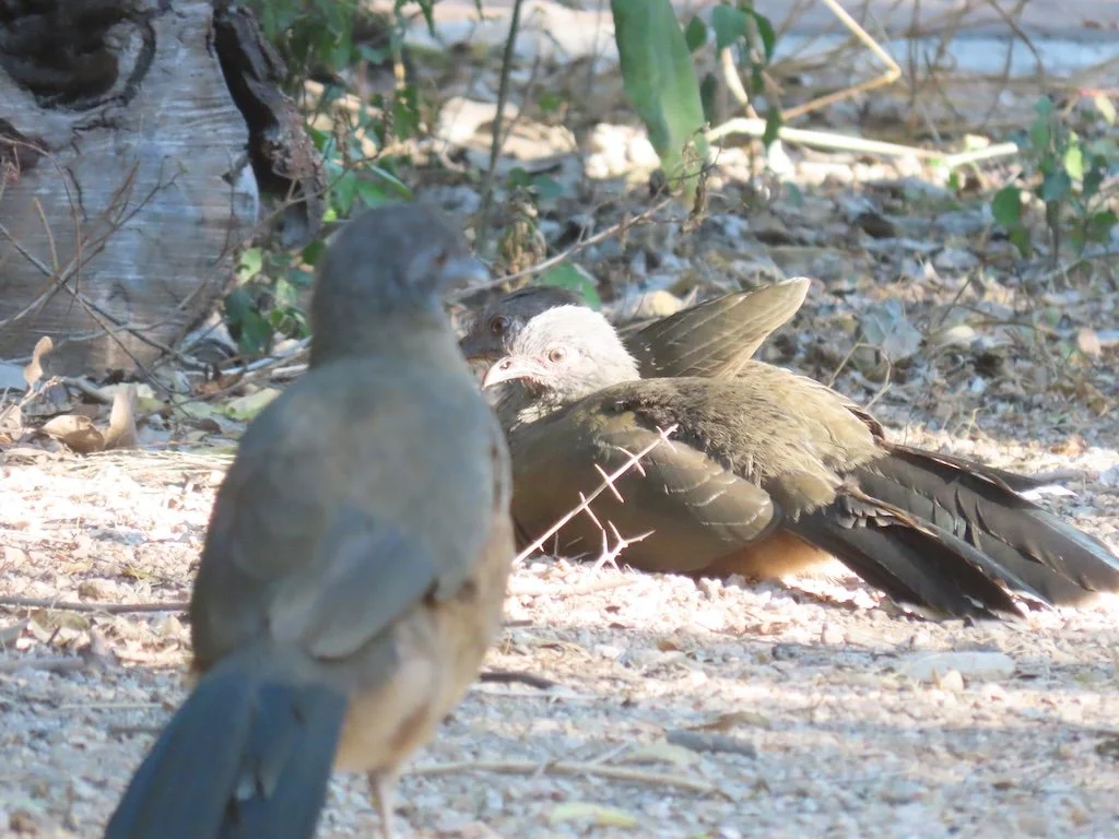 Great-tailed grackle (including a picture that makes it easy to see the size difference between the grackle and the chachalaca)