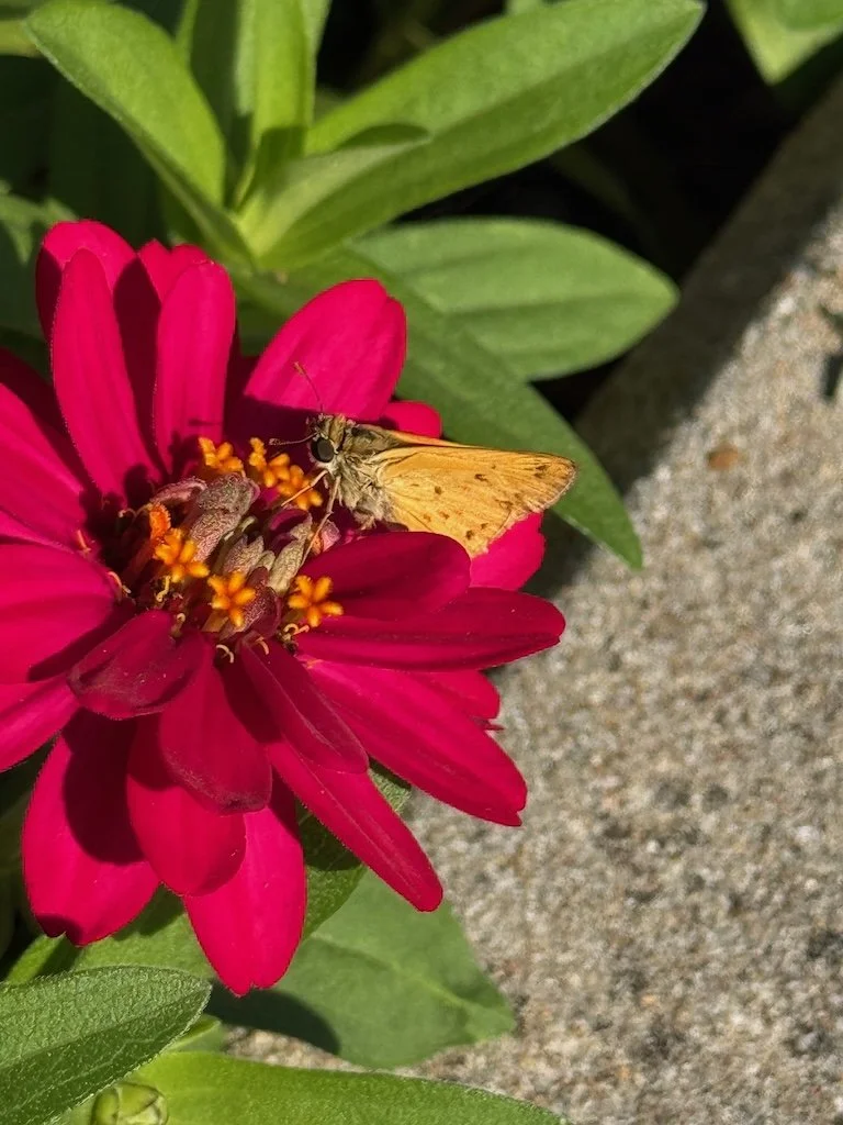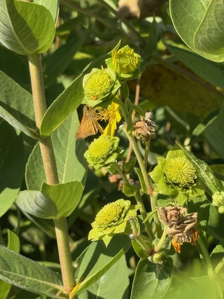 /I have a shift per week in the Roston Native Butterfly House…and try to take some pictures each time. I generally stop at the beds and rain garden near the Botanical Center before I go to the house. There are always flowering plants there…and sometimes critters too. I always check the wild indigo in the rain garden….and am waiting for the black seed pods to burst open. There are asters and goldenrod blooming now to feed the late season pollinators.