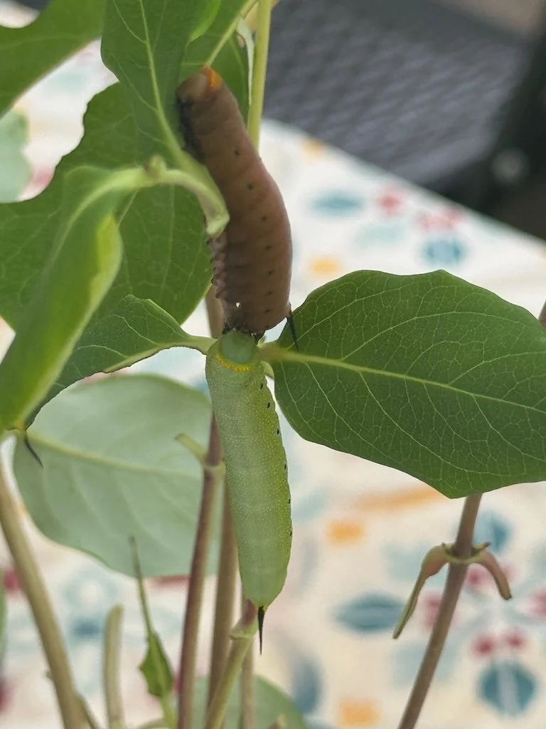 During August, the last of the luna and cecropia caterpillars made their cocoons and the Monarch, spicebush and snowberry clearwing caterpillars became the stars of the caterpillar display.