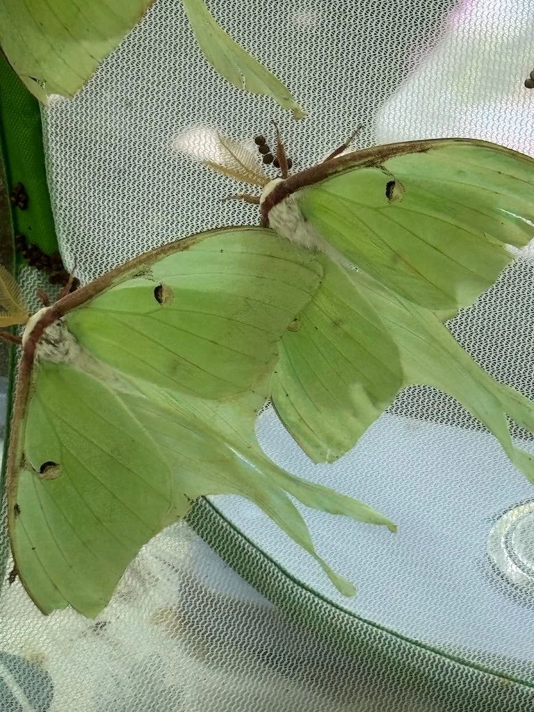 The big moths (luna, cecropia, and polyphemus) were still on display but their eggs are collected/stored until next spring because there is not enough time for the caterpillars to develop and make cocoons before winter.