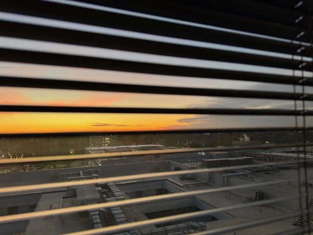 I drove down on his first day in the hospital and spent 4 nights with him. My other three sisters coordinated to stay with him during the day. The window in his hospital room faced the east so I had a good view of the sunrise; there was only one cloudy morning…otherwise the sunrises were gorgeous even with the blinds in the way! They did not make up for the collective angst that my sisters and I experienced at the hospital.