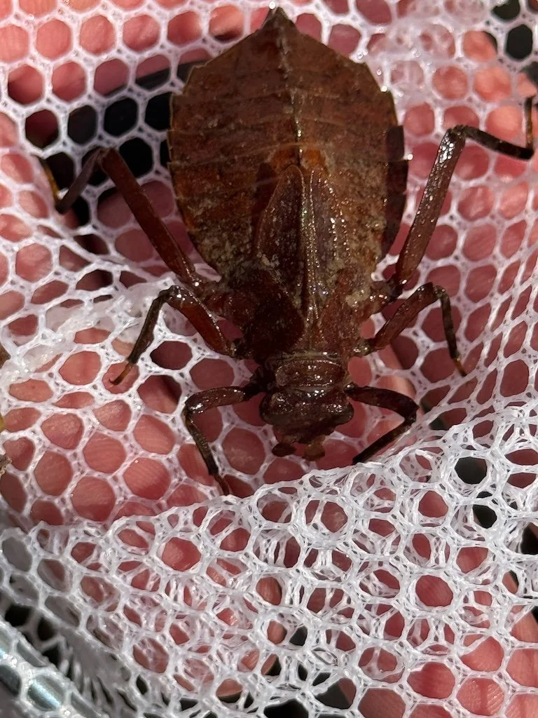 The water was very low and that made it harder to effectively use the seines although we did find a lot of water pennies. The other group found a couple of small hellgrammites…but the big find was right at the end: a dragonfly larva that looked like a leaf! What a great finale for our field trip activities.